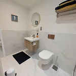 The apartment features a bathroom with a hairdryer, bath sheets, and slippers. Furthermore, a separate toilet and a shower is available.